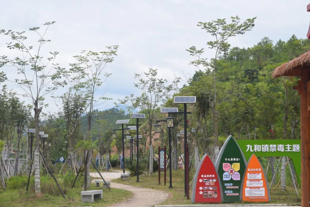 4座口袋公园面积虽小,却承载着传播先进文化、涵养乡风文明的重要使命。九和镇把法治、禁毒、人大、党建文化融入景观,让群众与游客在休闲中接受熏陶,提升素养,为精神文明建设注入“新动能”。