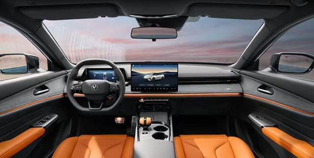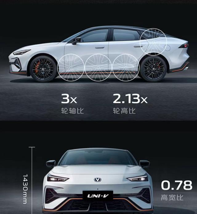第三代UNI-V的外观设计堪称「性能与美学的完美融合」。封闭式鲨鱼鼻前脸搭配上扬的「L」形利刃LED大灯,营造出怒视般的攻击性,夜间解锁时的「呼吸迎宾灯」与流水转向灯光秀,辨识度秒杀同级竞品。车身侧面采用0.78高宽比+3倍轮轴比的黄金比例,19英寸熏黑轮毂与橙色四活塞刹车卡钳(打孔刹车盘散热提升25%)强化了运动基因,半隐藏式门把手则将风阻系数优化至0.27Cd,高速行驶更稳更静。